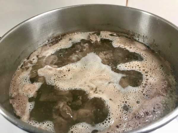 Kokosin vaahdot pois ja annnoin poreilla jokusen tunnin hellalla. Halusin hieman hyvää luulientä samalla talteen.