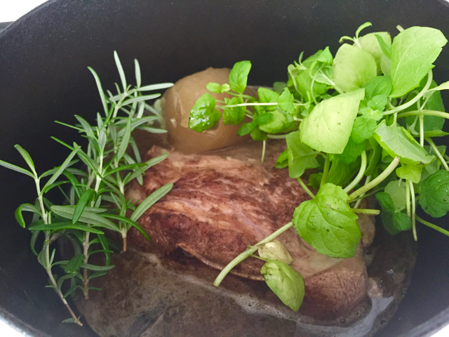 Ostin taannoin puolikkaan karitsan. Karitsan ensimmäinen ruoka tuli tälle päivälle. Pakastimesta otin sulamaan edellisenä iltana palan lapaa. Meinasin kuutioida palan, mutta se olikin luullinen, joten tein vain joitakin viiltoja pintaan. Paistoin rautapadassa pinnat kiinni (voita) ja lisäsin pataan vettä, luulientä ja yrttejä – minttua ja rosmariinia. Mausteksi suolaa ja rouhittua mustapippuria. Lambi sai hautua uunissa […]